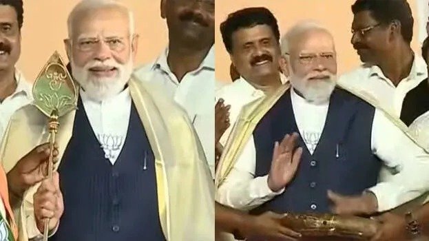 കേരളത്തിന്റെ ക്ലാസിക് കലാരൂപമായ കഥകളിയുടെ കിരീടമാണ് അനൂപ് ആന്റണി പ്രധാനമന്ത്രിക്ക് നൽകിയ മറ്റൊരു സമ്മാനം. ലോകത്തിന് മുന്നിൽ കേരളത്തിന്റെ ഐഡന്റിറ്റിയായ കഥകളിയെ ആദരവോടെ പ്രധാനമന്ത്രി സ്വീകരിച്ചു. കൂടാതെ, ‘ബിജെപി കേരളം’ എന്ന് ആലേഖനം ചെയ്ത പ്രത്യേക സ്മരണികയും അദ്ദേഹത്തിന് ആദ്യ ഉപഹാരമായി ലഭിച്ചു. തിരഞ്ഞെടുപ്പ് പ്രചാരണത്തിനപ്പുറം, കേരളത്തിന്റെ സാംസ്കാരിക ബോധവും മതസൗഹാർദ്ദവും ഒത്തുചേർന്ന ഒരു വേദിയായി തിരുവല്ല മാറി. തനിക്ക് ലഭിച്ച ഓരോ സമ്മാനത്തെയും ഏറെ താൽപ്പര്യത്തോടെയും ആദരവോടെയുമാണ് പ്രധാനമന്ത്രി ഏറ്റുവാങ്ങിയത്.
