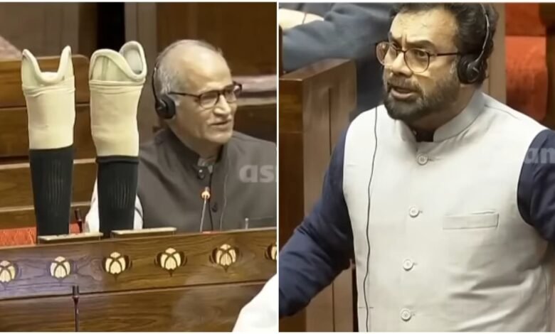 രാഷ്ട്രപതിയുടെ നയപ്രഖ്യാപന പ്രസം​ഗത്തിൻമേലുള്ള നന്ദിപ്രമേയ ചർച്ചയ്ക്ക് രാജ്യസഭയിൽ തുടക്കമിട്ടത് സി സദാനന്ദനാണ്. സി സദാനന്ദൻ പ്രസം​ഗിക്കുമ്പോൾ തൊട്ടടുത്തുണ്ടായിരുന്ന മഹാരാഷ്ട്രയിൽ നിന്നുള്ള എംപി ഉജ്വൽ നി​ഗമാണ് കൃത്രിമ കാലുകളെടുത്ത് മേശയ്ക്ക് മുകളിൽ വച്ചത്. പിന്നാലെ ജോൺ ബ്രിട്ടാസ് ക്രമ പ്രശ്നം ഉന്നയിച്ചു. തുടർന്ന് സഭാ അധ്യക്ഷൻ കൃത്രിമ കാലുകൾ താഴേക്ക് വയ്ക്കാൻ നിർദേശിച്ചു.