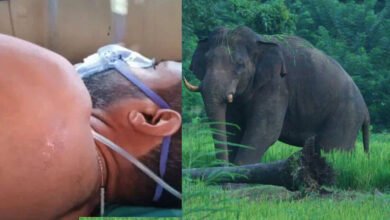 പാലോട് കാട്ടാനയുടെ ചവിട്ടേറ്റ് സ്കൂട്ടർ യാത്രക്കാരന് പരിക്ക്