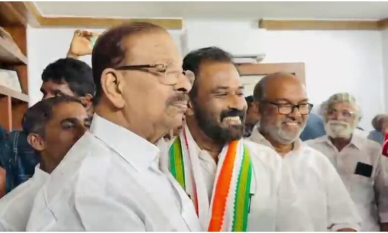 പിന്തുണയും അനുഗ്രഹവും തേടി മോഹനനെത്തി; ഷാള് അണിയിച്ച് സ്വീകരിച്ച് കെ സുധാകരൻ