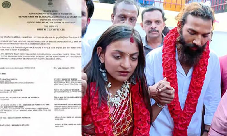 തിരുവനന്തപുരം : കുംഭമേള വൈറൽ താരം മൊണാലിസ ഭോസ്ലെയും ഉത്തർപ്രദേശ് സ്വദേശി ഫർമാൻ ഖാനും തമ്മിൽ കേരളത്തിൽ നടന്ന വിവാഹത്തിന് പുതിയ കുരുക്ക്. മൊണാലിസയ്ക്ക് 18 വയസ് പൂർത്തിയായിട്ടില്ലെന്നും 16വയസാണെന്നും വ്യക്തമാക്കുന്ന ജനന സർട്ടിഫിക്കറ്റ് പുറത്തുവന്നു. വിശ്വഹിന്ദു പരിഷത്താണ് മദ്ധ്യപ്രദേശ് സർക്കാരിന്റെ ജനന സർട്ടിഫിക്കറ്റ് പുറത്തുവിട്ടത്.