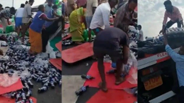 നെല്ലൂർ ജില്ലയിലെ ദേശീയപാതയിലാണ് അപകടം ഉണ്ടായതെന്നാണ് വിവരം. റോഡരികിൽ മറിഞ്ഞുകിടക്കുന്ന ലോറിക്ക് ചുറ്റും ചിതറിക്കിടക്കുന്ന ശീതളപാനീയ കുപ്പികൾ ശേഖരിക്കാൻ ആളുകൾ തിരക്കുകൂട്ടുന്നത് പുറത്തുവന്ന ദൃശ്യങ്ങളിൽ കാണാം. പരിക്കേറ്റ ഡ്രൈവറെ സഹായിക്കാനോ ആശുപത്രിയിലെത്തിക്കാനോ തയ്യാറാകാതെയാണ് കിട്ടാവുന്നത്ര കുപ്പികൾ നാട്ടുകാർ അടിച്ചുമാറ്റുന്നത്.