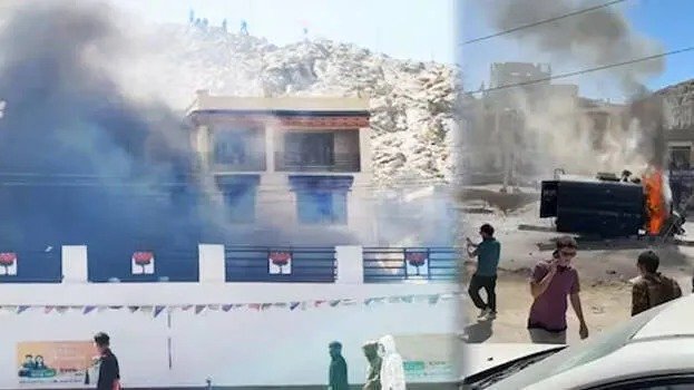 സംഘർഷത്തിനിടെ സമരക്കാർ പൊലീസ് വാഹനത്തിന് തീയിട്ടു. ലേ മേഖലയിൽ നടന്ന പ്രകടനത്തിനിടെ പ്രതിഷേധക്കാർ ബിജെപി ഓഫീസിന് നേരെ കല്ലെറിയുകയും തുടർന്ന് തീയിടുകയും ചെയ്തു. ഇതോടെ പ്രതിഷേധക്കാരെ പിന്തിരിപ്പിക്കാൻ പൊലീസുകാർ കണ്ണീർവാതകം പ്രയോഗിക്കുകയും ലാത്തിചാർജ് നടത്തുകയും ചെയ്തു. ലഡാക്കിൽ ഇപ്പോൾ നിരോധനാജ്ഞ പ്രഖ്യാപിച്ചിരിക്കുകയാണ്.കഴിഞ്ഞ കുറച്ച് ആഴ്ചകളായി ലഡാക്കിൽ പ്രതിഷേധം ശക്തമാണ്.