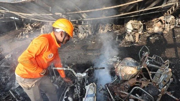 തൃശൂർ റെയിൽവെ പാർക്കിംഗിൽ വൻ അഗ്നിബാധ; ബൈക്കുകൾ കത്തിനശിച്ചു