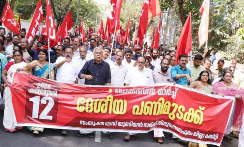 തിരുവനന്തപുരം: കേന്ദ്രസർക്കാർ നയങ്ങൾക്കെതിരെ സംയുക്ത ട്രേഡ് യൂണിയൻ പ്രഖ്യാപിച്ച 24 മണിക്കൂർ ദേശീയ പണിമുടക്ക് കേരളത്തിൽ പൂർണം. ഇന്നലെ അർദ്ധരാത്രി 12 മണിക്ക് ആരംഭിച്ച പണിമുടക്ക് ഇന്നുരാത്രി 12 മണിവരെ തുടരും. രാജ്യത്തെ പത്ത് ട്രേഡ് യൂണിയനുകളിൽപ്പെട്ട തൊഴിലാളികളാണ് പണിമുടക്കുന്നത്. ലേബർ കോഡുകൾ പിൻവലിക്കുക, ദേശീയ ഗ്രാമീണ തൊഴിലുറപ്പ് പദ്ധതി പുനഃസ്ഥാപിക്കുക, കർഷക വിരുദ്ധ നിയമങ്ങൾ പിൻവലിക്കുക തുടങ്ങിയ ആവശ്യങ്ങൾ ഉന്നയിച്ചാണ് തൊഴിലാളി സംഘടനകൾ പണിമുടക്കുന്നത്.