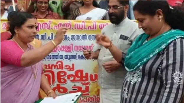 വെള്ളാപ്പള്ളി നടേശനുവേണ്ടി രക്തത്താൽ പ്രതിജ്ഞ; തിലകം ചാർത്തി എസ്എൻഡിപി വനിതാ പ്രവർത്തകർ