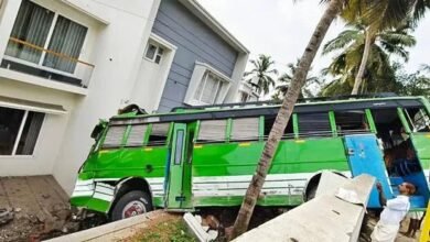 നിയന്ത്രണം വിട്ട സ്വകാര്യ ബസ് മതിൽ തകർത്ത് വീടിനുള്ളിലേക്ക് ഇടിച്ചുകയറി