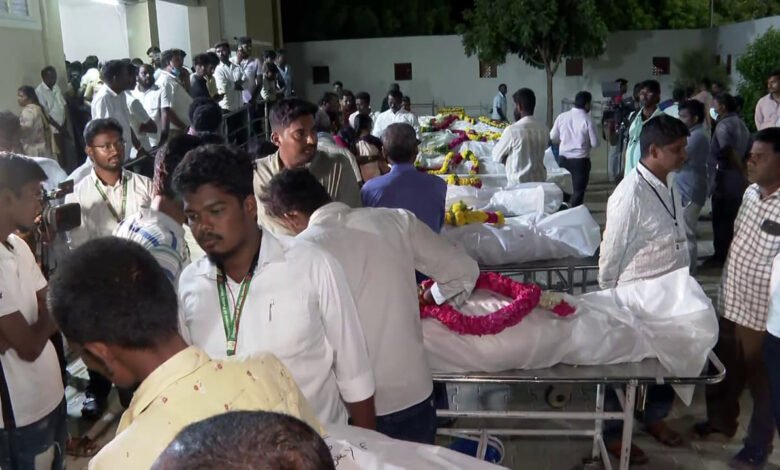 പുലര്‍ച്ചെയോടെ നടപടികള്‍ പൂര്‍ത്തിയാക്കി മൃതദേഹങ്ങള്‍ വിട്ടു കൊടുത്തു തുടങ്ങി. 38 പേരുടെ മൃതദേഹങ്ങള്‍ തിരിച്ചറിഞ്ഞു.ഉറ്റവര്‍ മരിച്ചവരുടെ വേദന താങ്ങാനാത്തവരുടെ ഹൃദയഭേദകമായ കാഴ്ചയാണ് ആശുപത്രി പരിസരത്ത്. മരിച്ചവരുടെ കുടുംബത്തിന് അടിയന്തര സഹായമായി തമിഴ്നാട് സര്‍ക്കാര്‍ പത്ത് ലക്ഷം പ്രഖ്യാപിച്ചു.കരൂർ റൗണ്ടാനയിലായിരുന്നു വിജയ് പരിപാടി നടത്താൻ ആദ്യം അനുമതി തേടിയത്. എന്നാൽ, അവിടെ സൗകര്യം ഇല്ലെന്ന് പറഞ്ഞാണ് പൊലീസ് അനുമതി നിഷേധിച്ചതെന്നാണ് പറയുന്നത്.