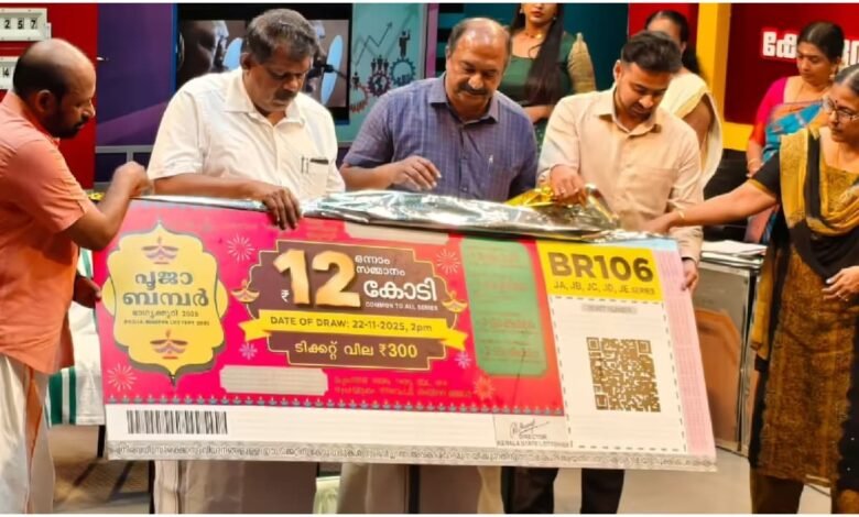 കേരള സംസ്ഥാന ഭാഗ്യക്കുറി വകുപ്പിന്റെ ഈ വർഷത്തെ പൂജ ബമ്പർ BR 106 ഉച്ച കഴിഞ്ഞ് രണ്ട് മണിയോടെ നറുക്കെടുത്തപ്പോൾ 12 കോടി രൂപയുടെ ഒന്നാം സമ്മാനം JD 545542 എന്ന നമ്പറിനാണ് ലഭിച്ചത്. 12 കോടി രൂപ പൂജ ബമ്പർ അടിച്ചാൽ വിവിധ നികുതി കിഴിച്ചുള്ള തുകയാകും സമ്മാനാർഹന് ലഭിക്കുക. 10 ശതമാനം ആണ് ഏജന്സി കമ്മീഷൻ. അതായത് 1.2 കോടി രൂപ. ബാക്കിയുള്ള 10.8 കോടി രൂപയ്ക്ക് മുകളിലാണ് സമ്മാന നികുതി വരുന്നത്.